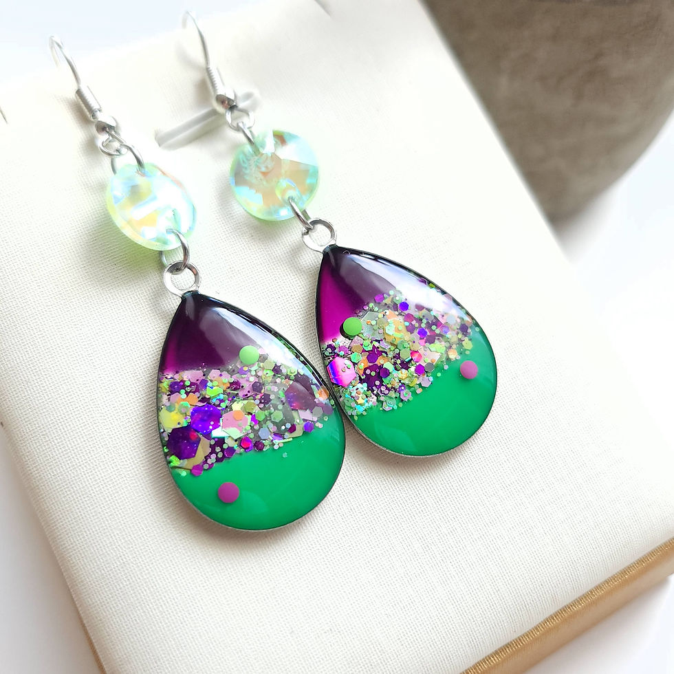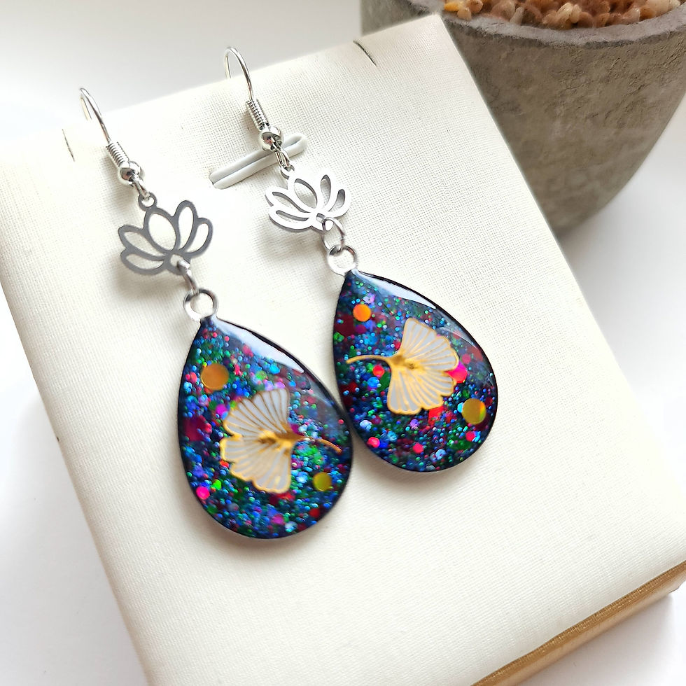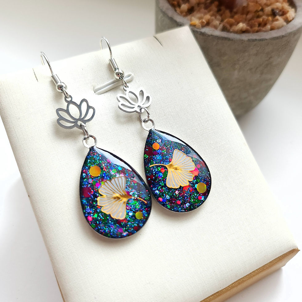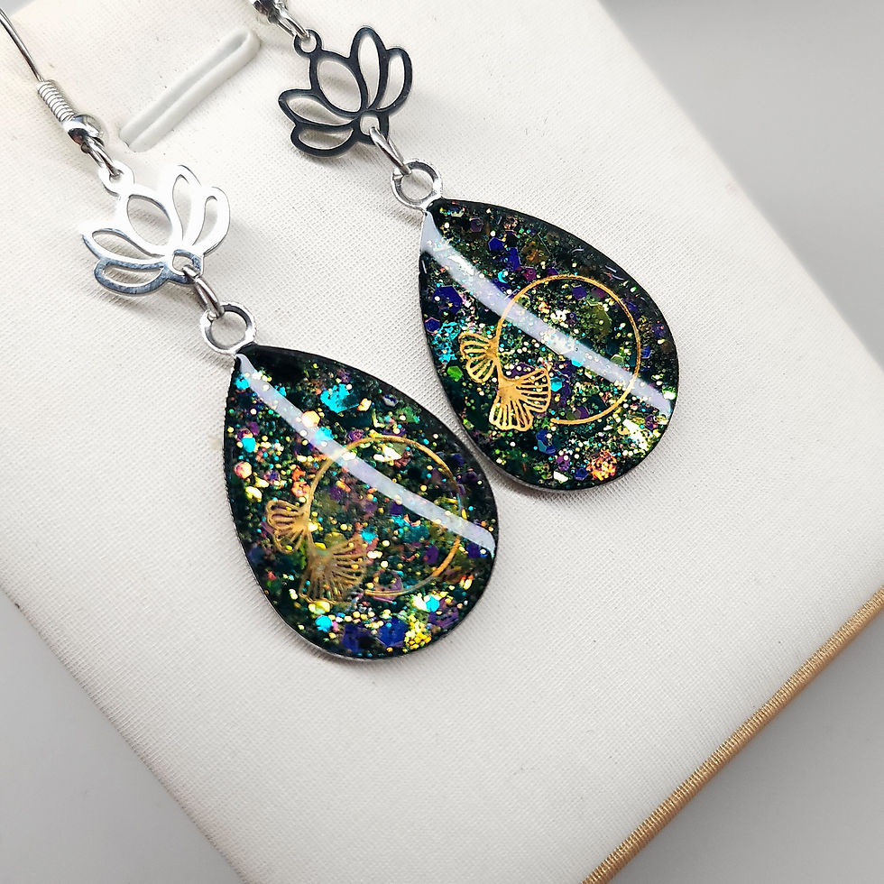 Les cabochons sont réalisés à la main avec un Mélange de résine de pigments et de paillettes ce qui rend chaque modèle unique !