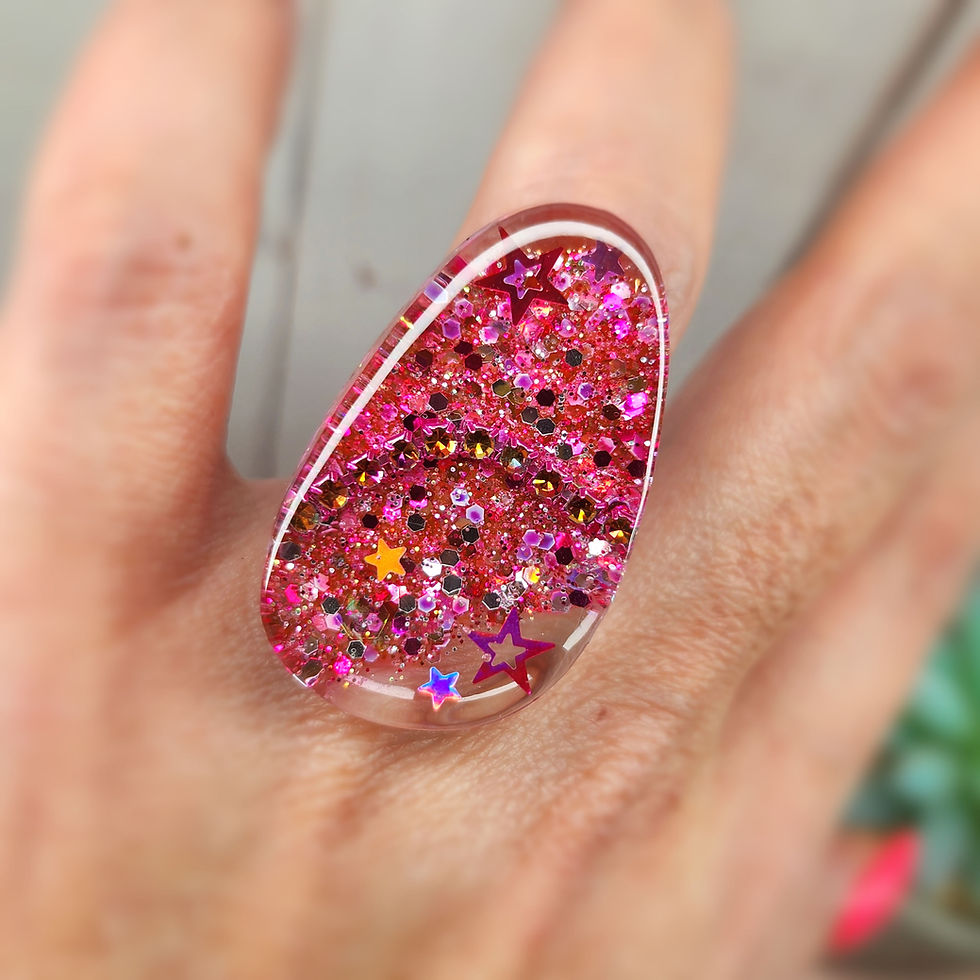 Le galet en résine est réalisé à la main avec un Mélange de résine de pigments et de paillettes ce qui rend chaque modèle unique !